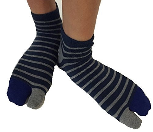 Tabi Socks- Comfortable Soft Dark Blue/Gray Stripes Pattern Ankle-High Toe Socks